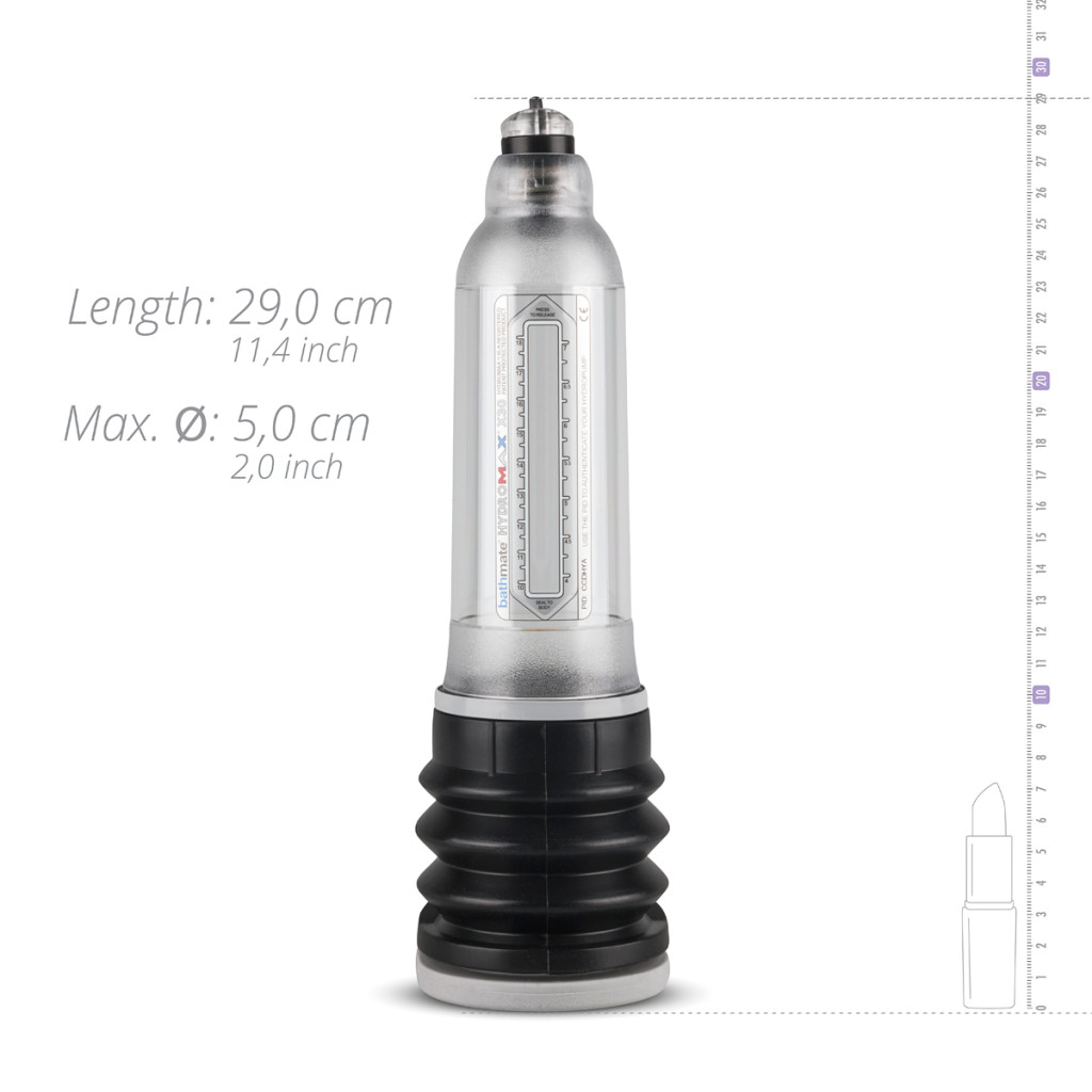 A Hydromax7 modellt kifejezetten a 13–18 cm közötti mérettartományhoz tervezték, így stabil illeszkedést és kényelmes használatot kínál. Az ABS, gumi és orvosi minőségű szilikon kombinációja gondoskodik a tartósságról, a kellemes érintkezésről és a higiénikus tisztíthatóságról. A hidraulikus rendszer akár 35%-kal nagyobb teljesítményt nyújt a korábbi Bathmate generációkhoz képest, miközben a puha tömítés segít a megfelelő záródás kialakításában.