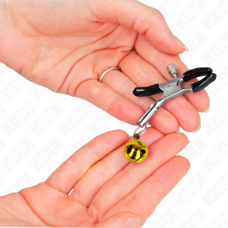 A KINK arany színű, csengős mellbimbócsipesz ideális választás mindazok számára, akik egy elegáns, jól szabályozható és érzékszervileg is izgalmas kiegészítőt keresnek az élmények finomhangolásához.