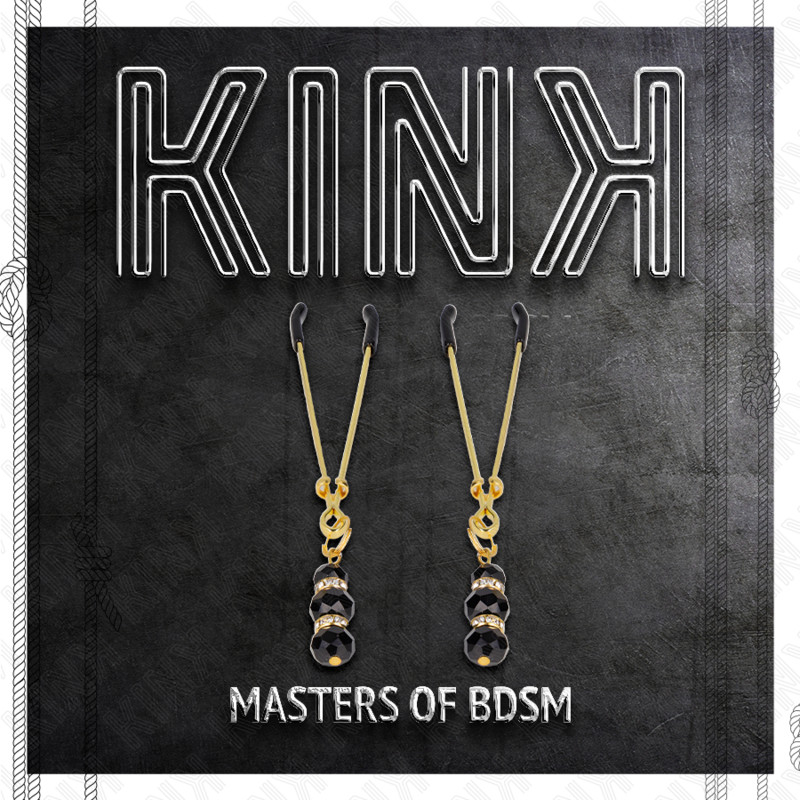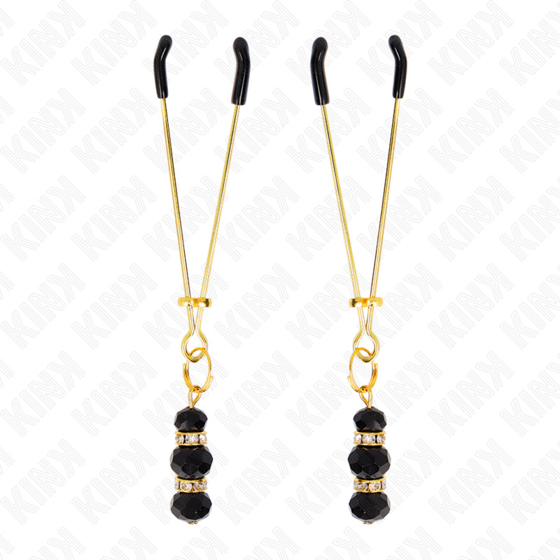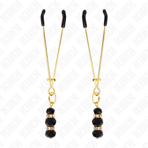 KINK – Állítható aranyszínű mellbimbócsipesz fekete üveggyöngyökkel, 7 cm