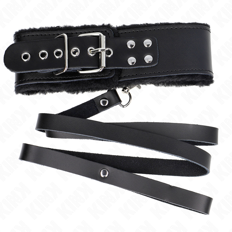 KINK – Állítható bőr nyakörv és póráz szett, 116 cm, fekete