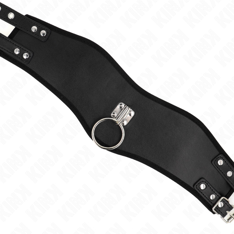 A 10 cm széles pánt stabil tartást és egyenletes terheléselosztást biztosít. A nyakörv elején elhelyezett masszív fém D-gyűrű praktikus csatlakozási pontként szolgál pórázhoz vagy más kompatibilis kiegészítőkhöz, így sokoldalúan használható különböző helyzetekben.